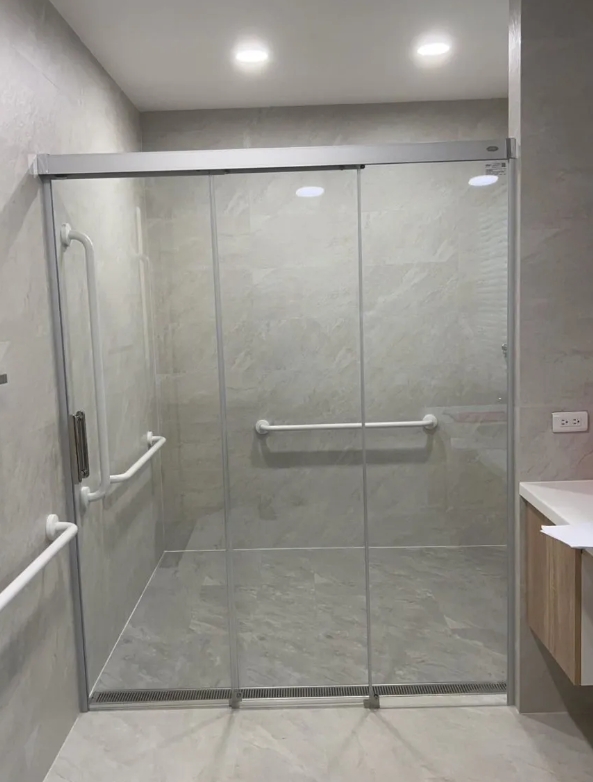 值得一提的是,像一太e衛浴這類深耕淋浴拉門領域的品牌,也有推出無障礙淋浴拉門的款式,可搭配降板或集水槽設計使用,讓無門檻浴室的規劃更加完整。